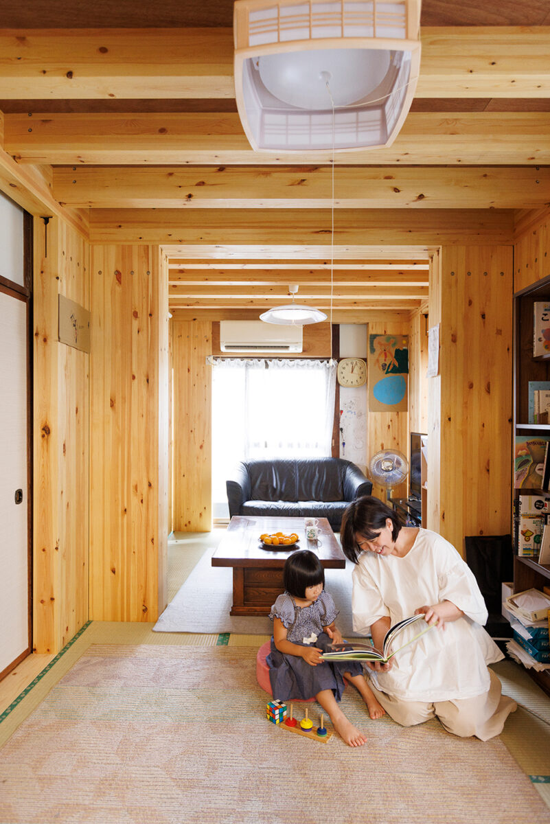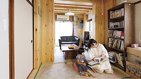 東急線の二子玉川駅周辺は再開発によっておしゃれな商業施設が増えた一方、駅のすぐ近くにも古くからの戸建て住宅街が残っています。その中の一軒が、〈地域共生のいえ〉として地域に開放されている「らくらくハウス」です。外見はごく一般的な昭和の民家の2間つづきの和室に「木質耐震シェルター70K」を設置。一般財団法人世田谷トラストまちづくりの日々の活動と当団体の技術の連携により安心して活動できる「地域コミュニティ」の提供を可能にしました。