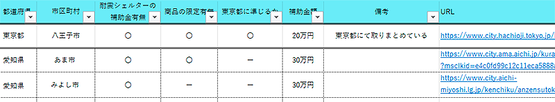 「耐震シェルター 70K」で利用可能な、全国の都道府県・市町村別の補助金情報をとりまとめています。