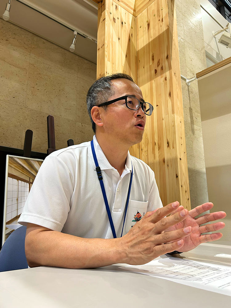 令和6年元旦に能登半島を襲った「能登震災」後、ほどなくしてのこと。愛媛県伊⽅町役場より、耐震住宅100%実⾏委員会の会員である⼯務店、TOAHOME(トーアホーム)に⼀件の電話がかかってきました。電話を取ったのは、営業部次⻑の⽑利貴紀さん。電話の主は、伊⽅町役場建設課課⻑補佐の⽜尾元宣さんでした。⽜尾さんいわく、耐震住宅100%実⾏委員会が取り扱っている「⽊質耐震シェルター70K」について話を聞かせてほしいとのこと。
