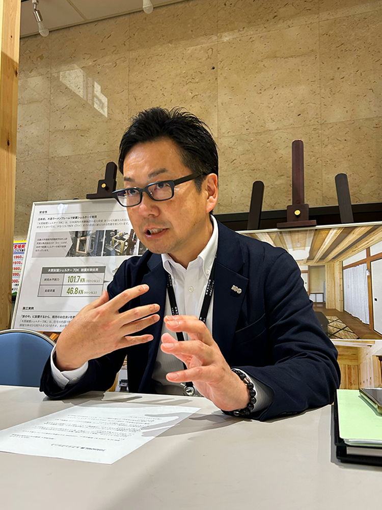 「私たち『耐震住宅100%実⾏委員会』の活動指針もそうなんですが、まさにその『命を守る』というワード。TOAHOMEでは新築において、⼈命第⼀、命を守る建築、というのを重視してきたのですが、それだけでなくこれからは、リフォームや耐震シェルターについても、⼀件でも⼀棟でも多く県内に納品させてもらって、『命が助かってよかったよね』という声が多く聞こえるように活動していきたいですね」。とTOAHOMEの⽑利さんは語ります。