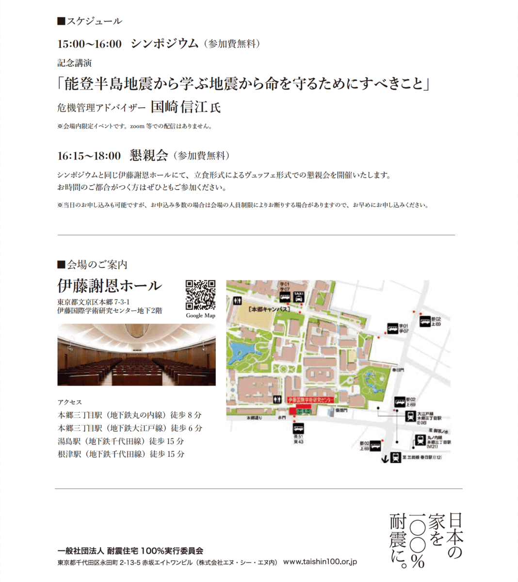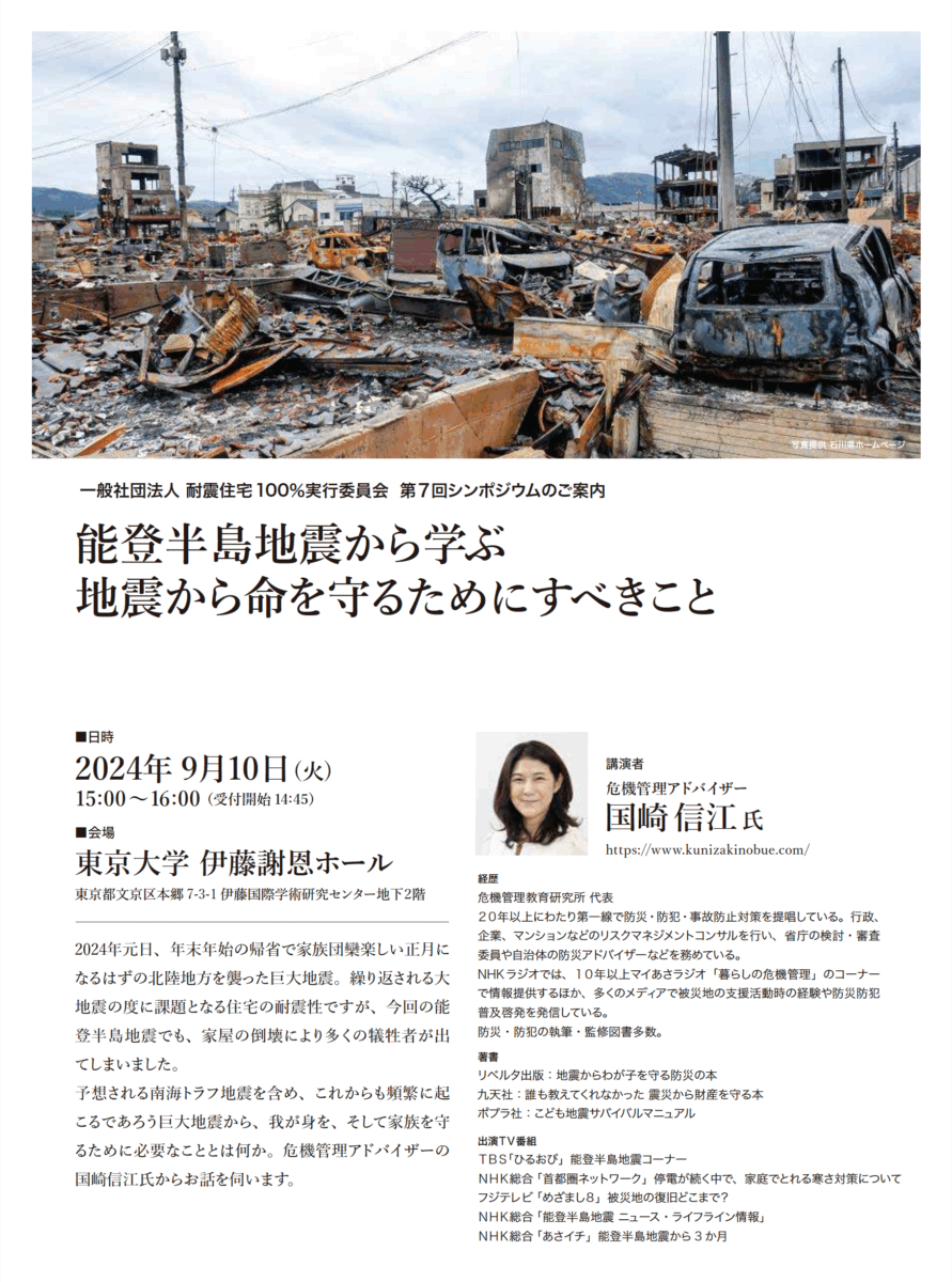 耐震住宅100% 公開日 : 2024年08月22日 一般社団法人 耐震住宅100%実行委員会 第7回シンポジウムのご案内 参加のお申し込みはこちら チラシダウンロードは、こちら[PDF] 参加のお申し込みはこちら