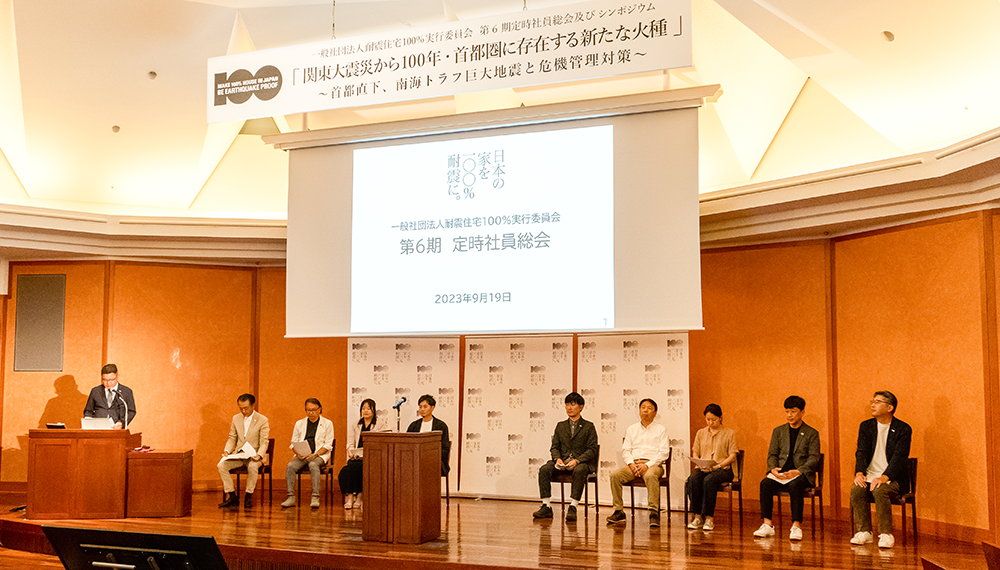 2023年9月19日(火) 第6期 一般社団法人 耐震住宅100%実行委員会定時社員総会が開催されました。本年も昨年同様、学究のための国際会議・種々学会の施設である東京大学 伊藤国際学術研究センター/伊藤謝恩ホールにて、議事が執り行われました。